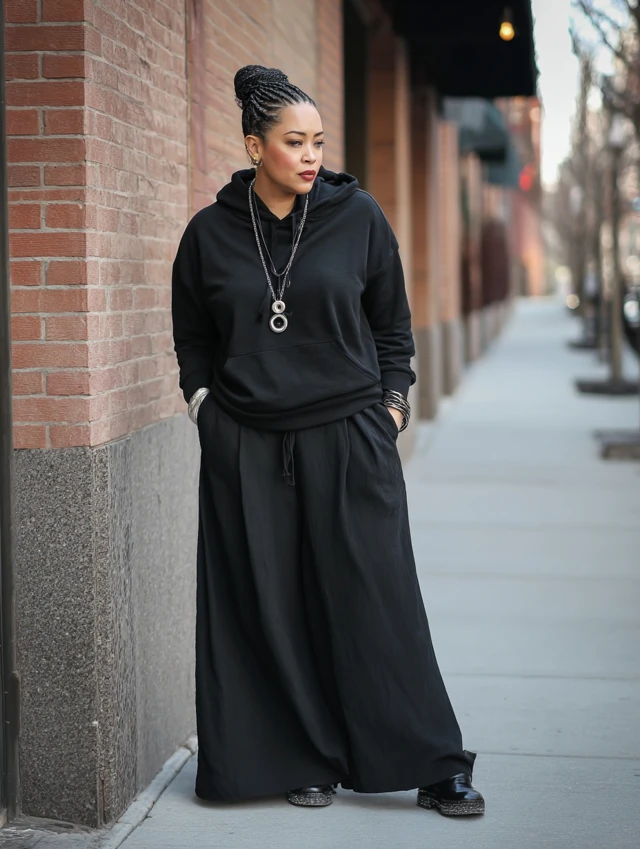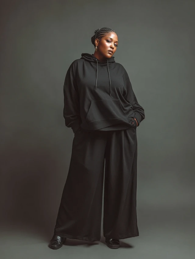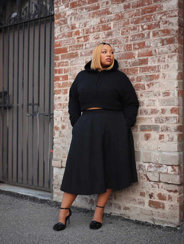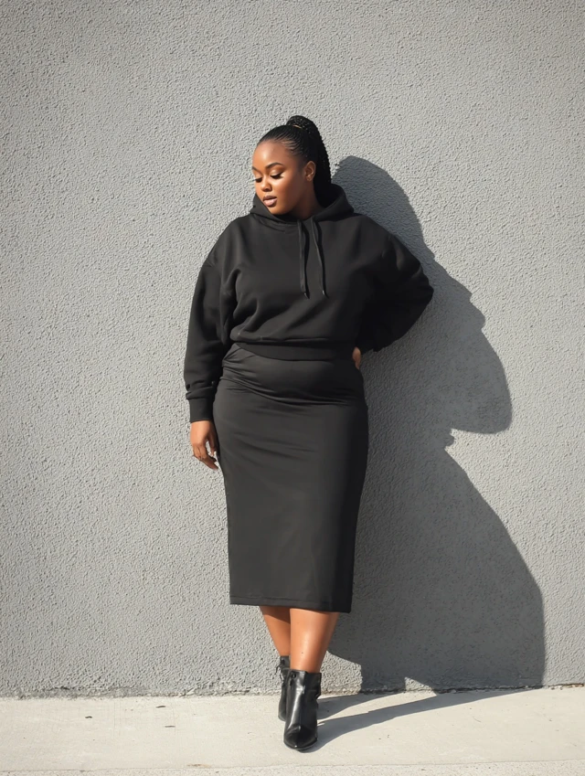 The black hoodie is more than just loungewear — it’s a wardrobe essential that can be styled in dozens of ways. It’s casual, comfortable, and endlessly versatile, making it perfect for plus-size women who want a go-to piece that can be dressed up or down. Whether you’re running errands, heading to a concert, or lounging at home, the black hoodie delivers effortless style.