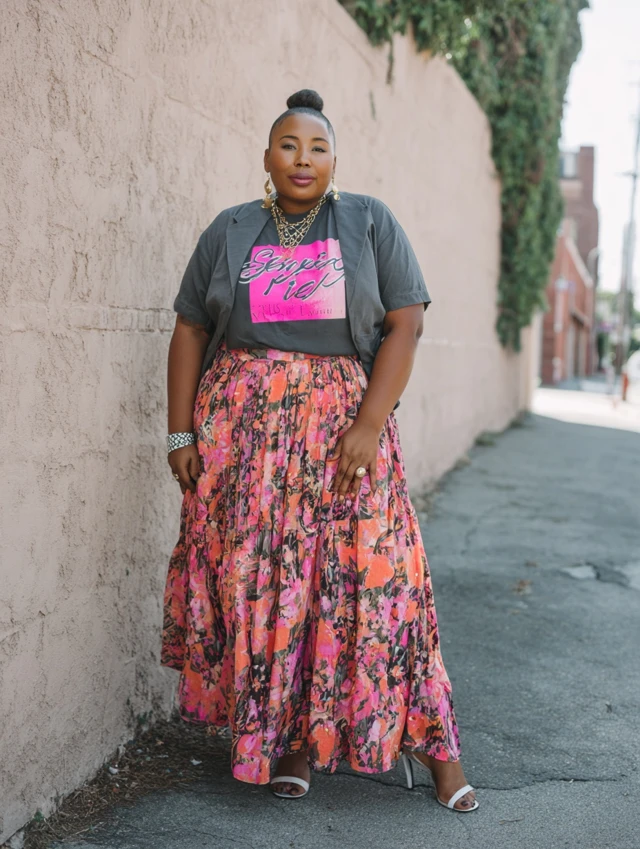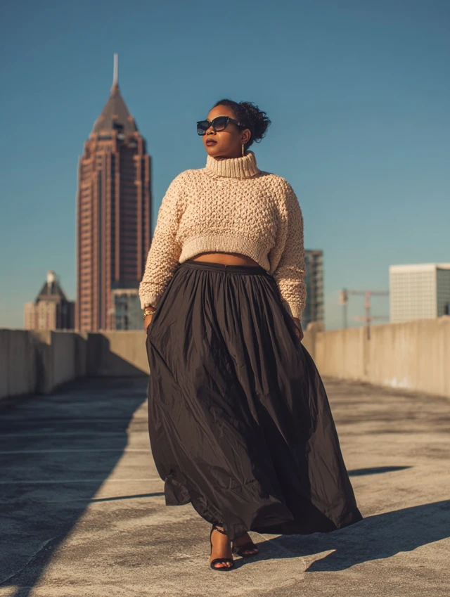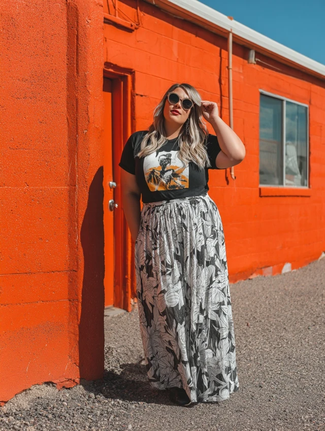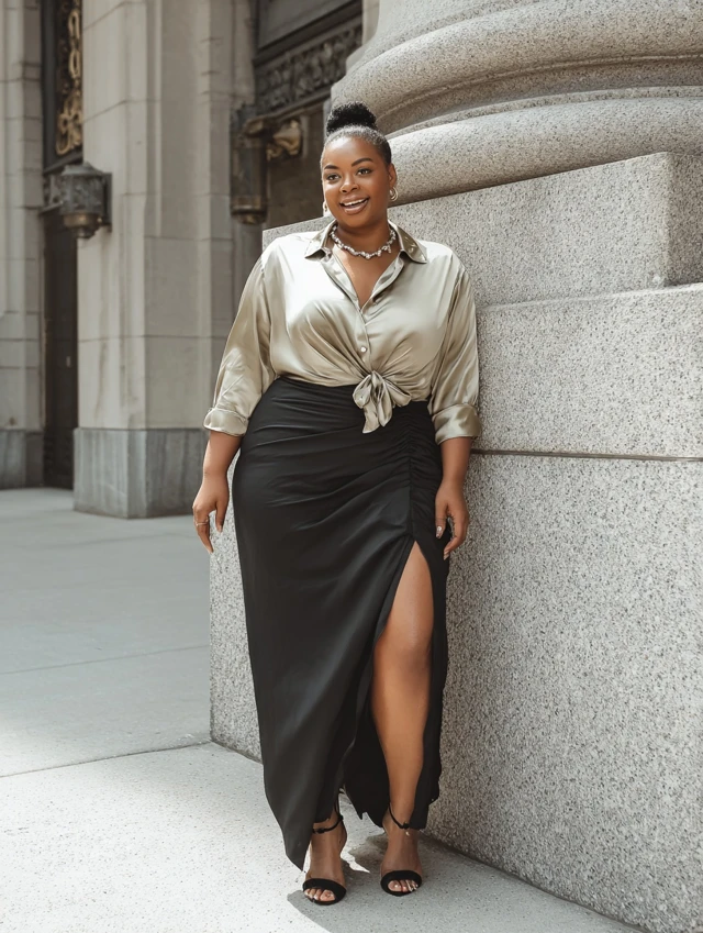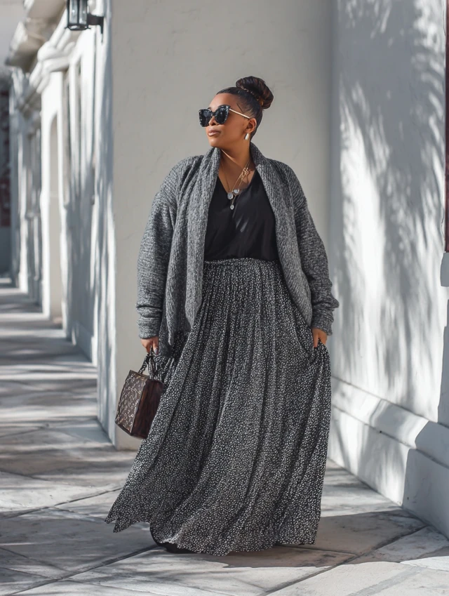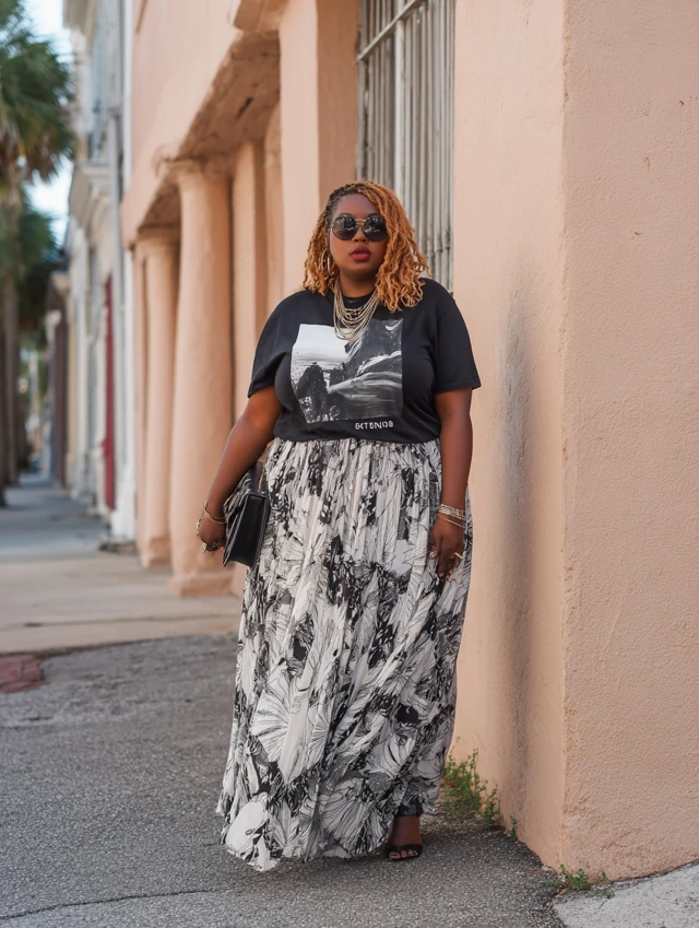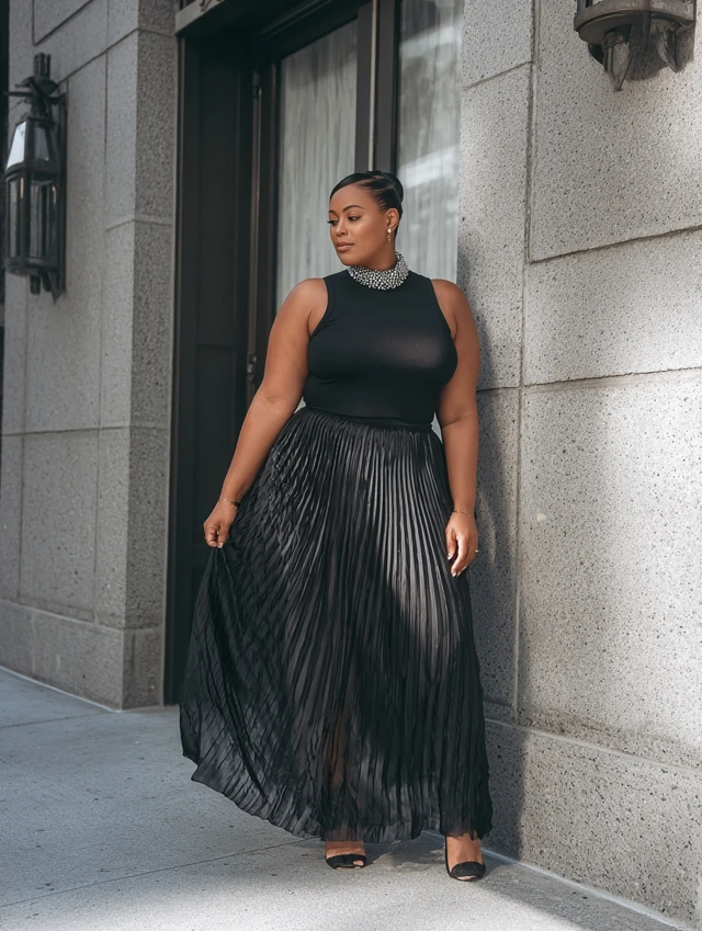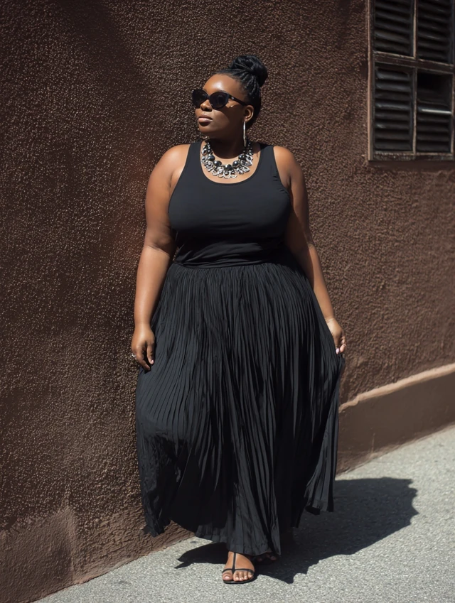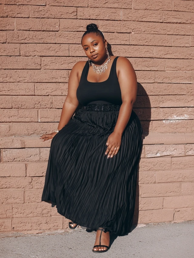 The beauty of a black maxi skirt? It’s a blank canvas. You can make it casual, edgy, romantic, or professional with just a switch of tops and accessories. For plus-size women, it’s the ultimate piece that moves with you while giving a polished finish.