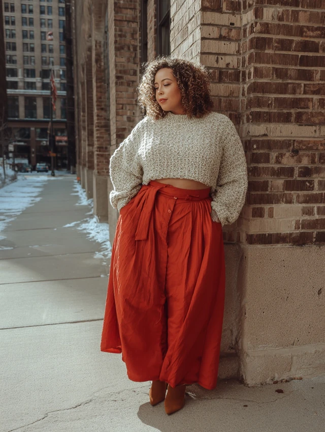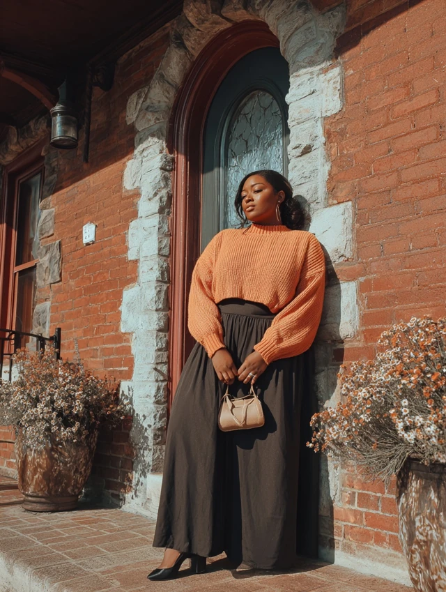 3. Cropped Sweater + High-Waisted Maxi Skirt