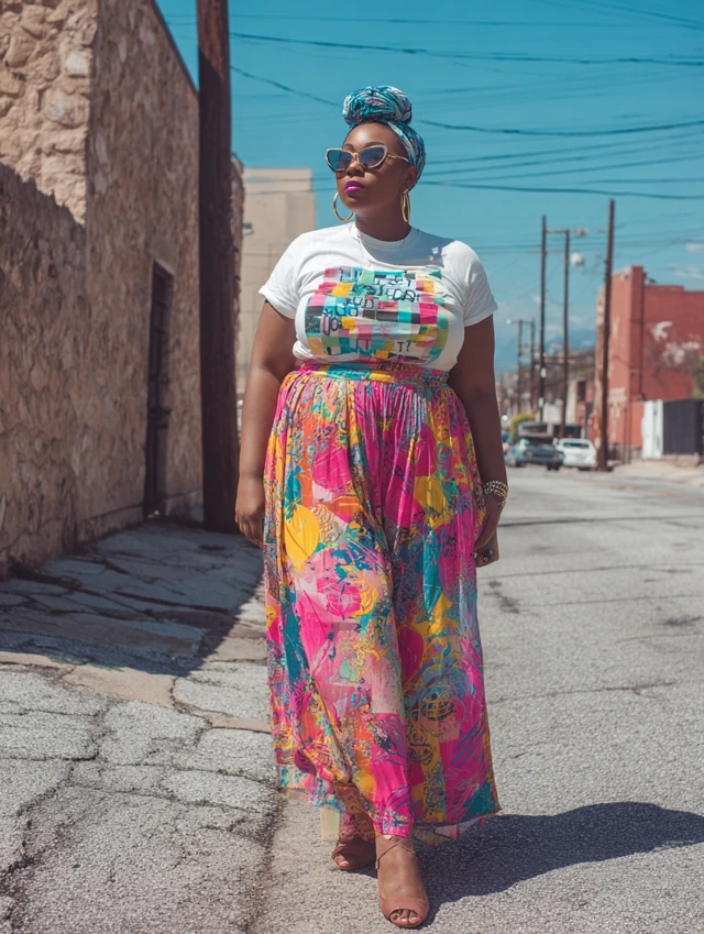 Confidence is what takes a maxi skirt from simple to striking. Make sure the skirt hits at the right length (just brushing the tops of your shoes), experiment with waist-defining belts, and don’t be afraid to try bold tops or accessories.