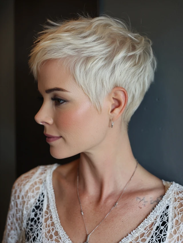 Blonde pixie cuts thrive on precision and tone.