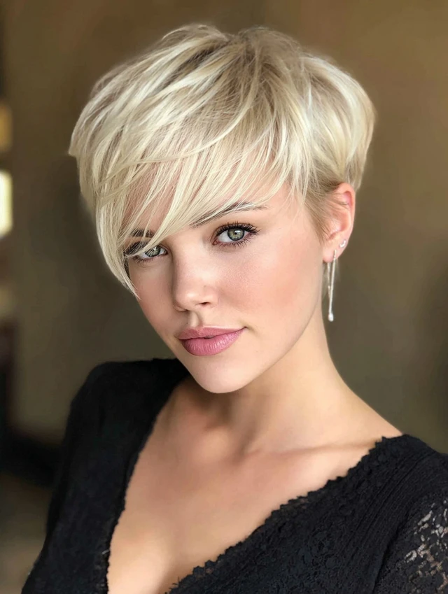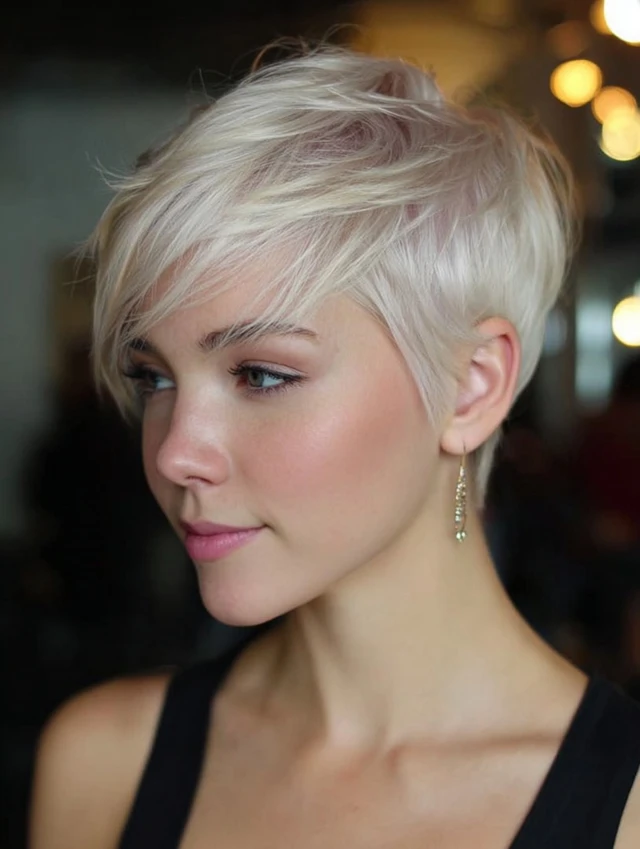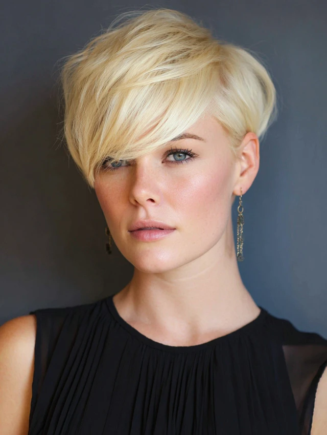 3. Blonde Pixie Cut with Side-Swept Bangs