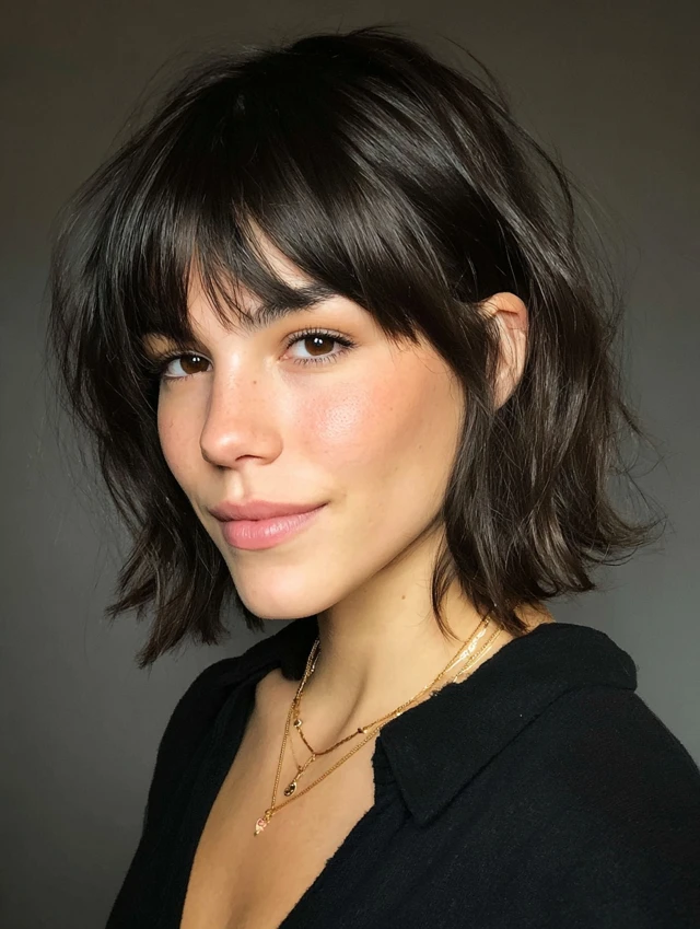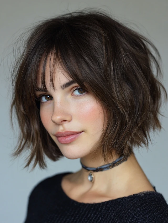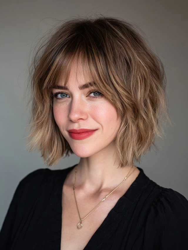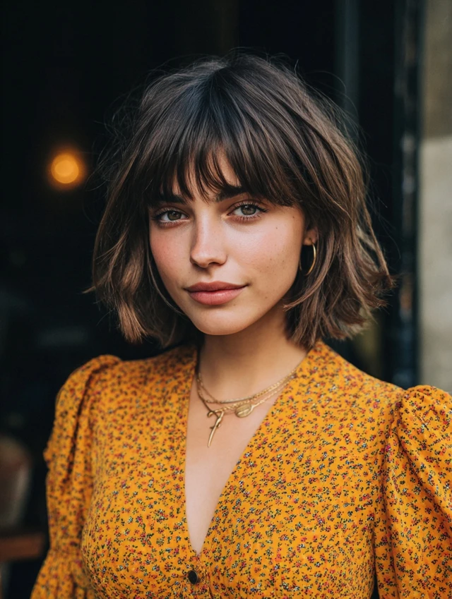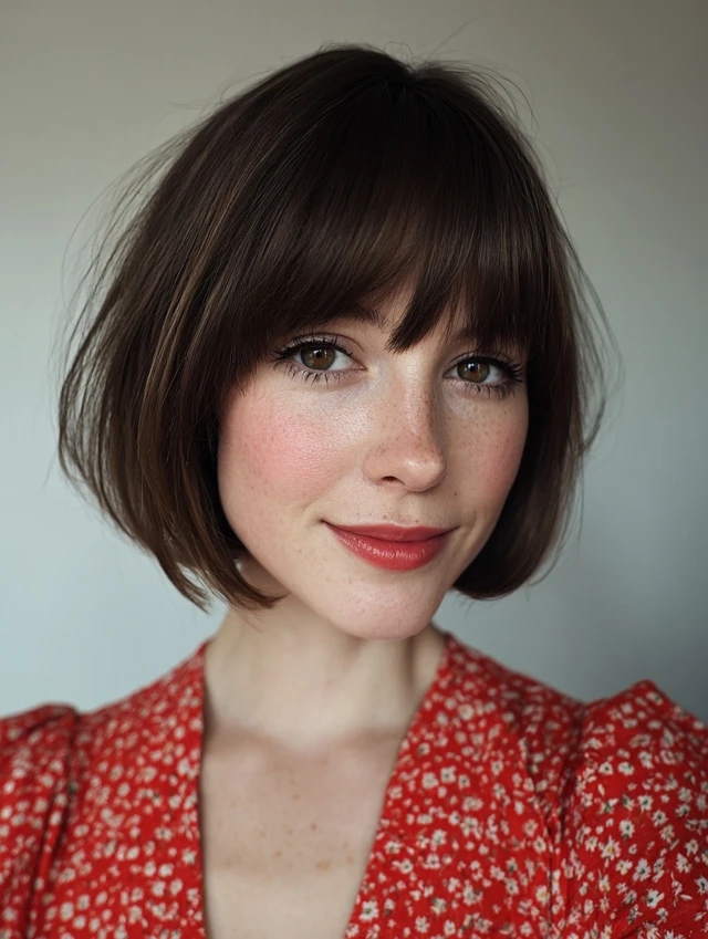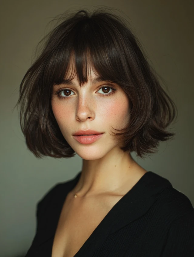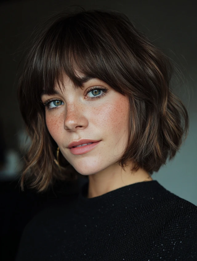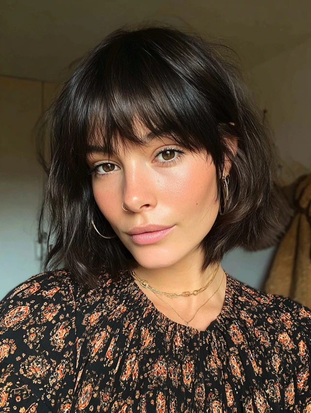 Why it works: Gentle bangs frame the face and blend naturally with the bob.