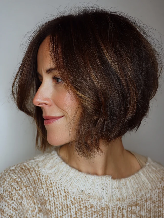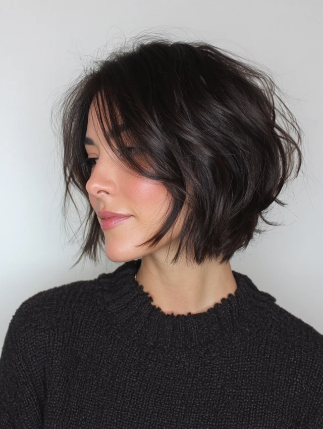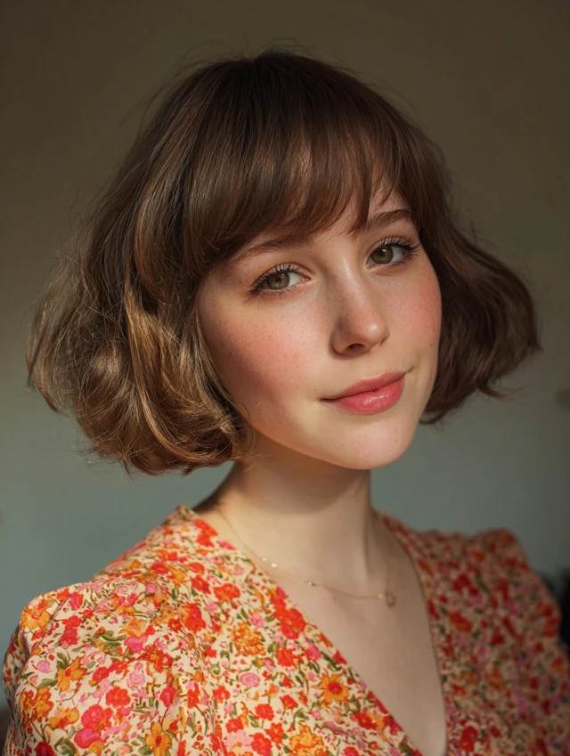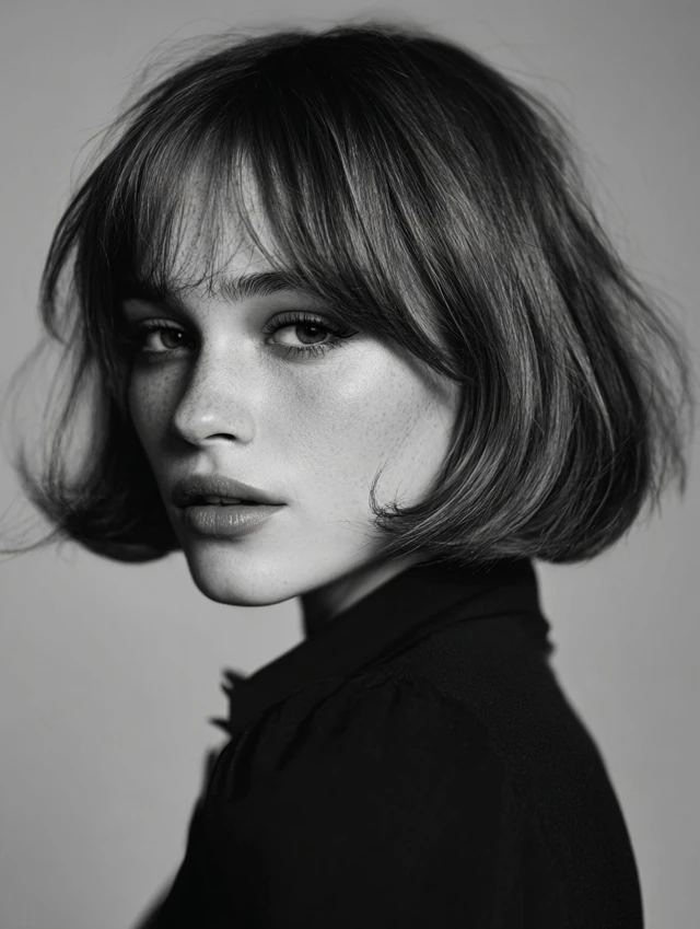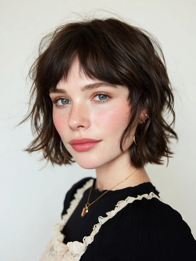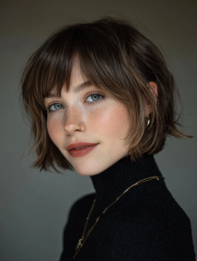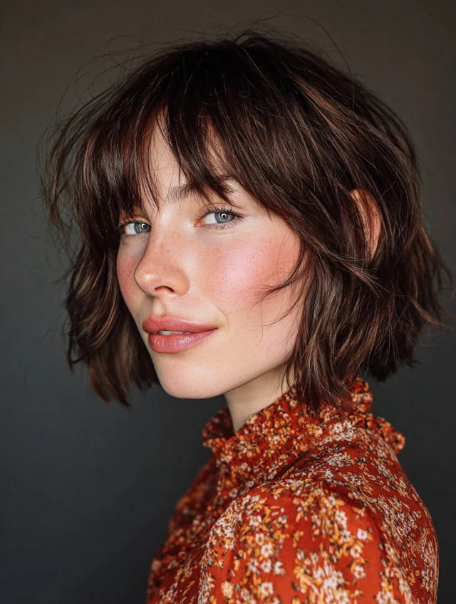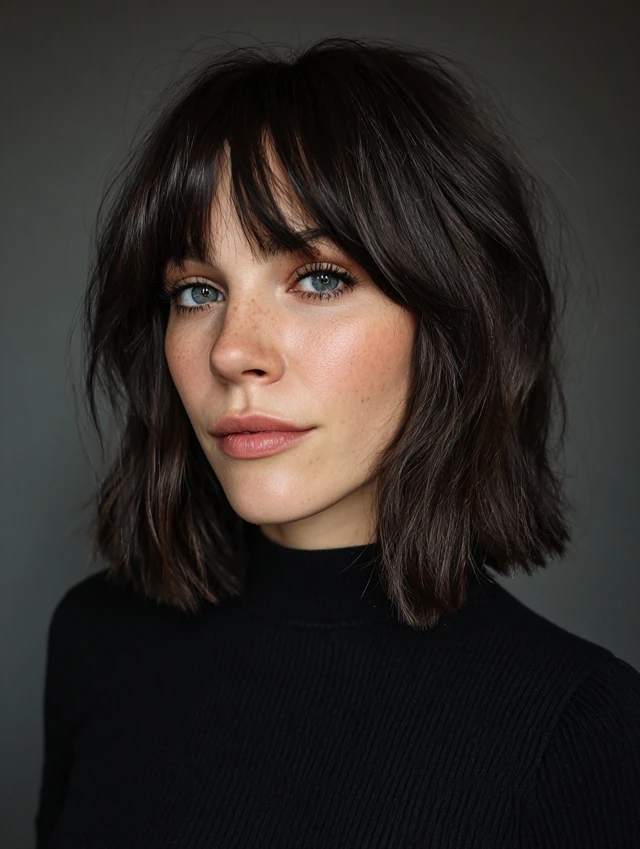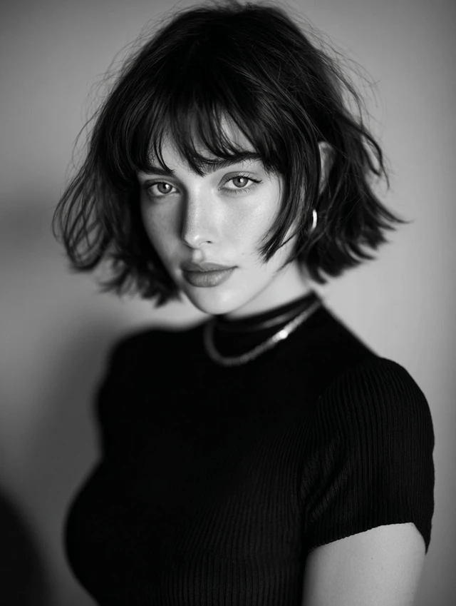 Why it works: Gentle bangs frame the face and blend naturally with the bob.