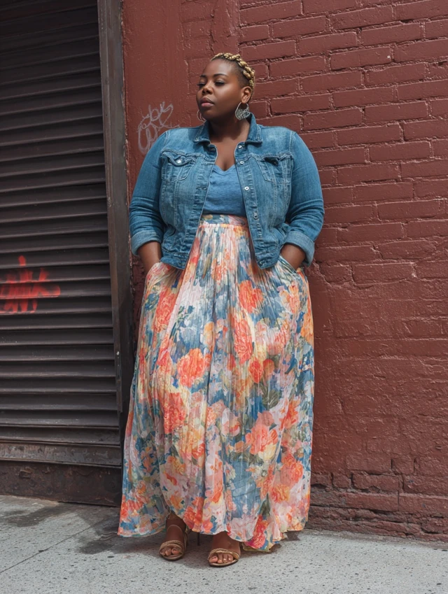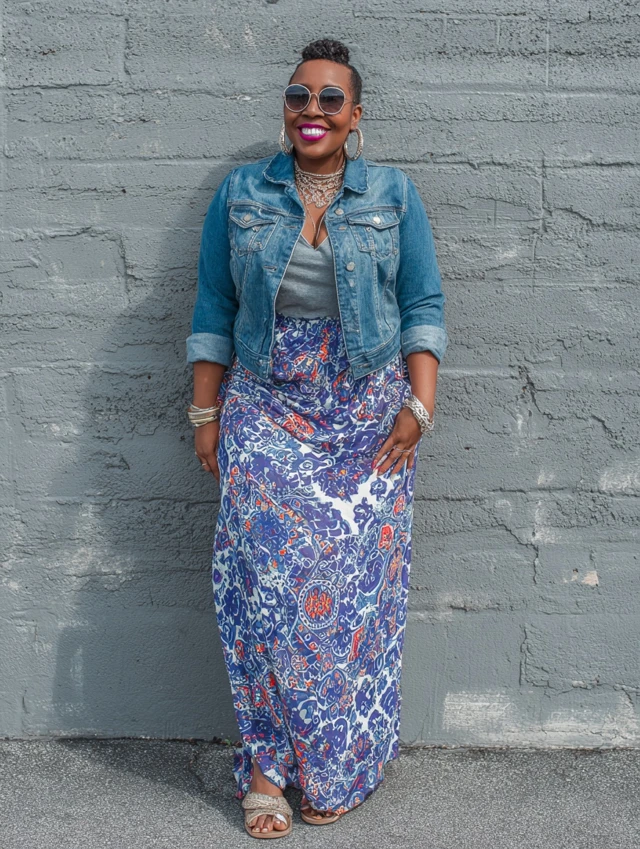 Why It Works: The structure of denim contrasts beautifully with a free-flowing skirt.