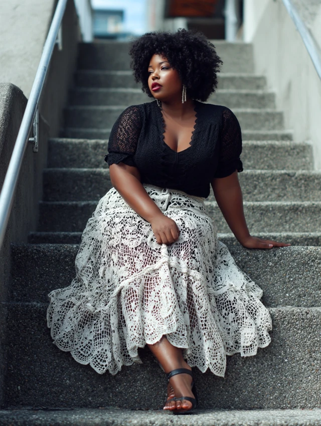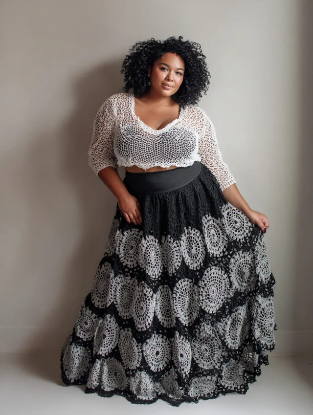 Why It Works: Tiered skirts create movement while crochet brings texture.