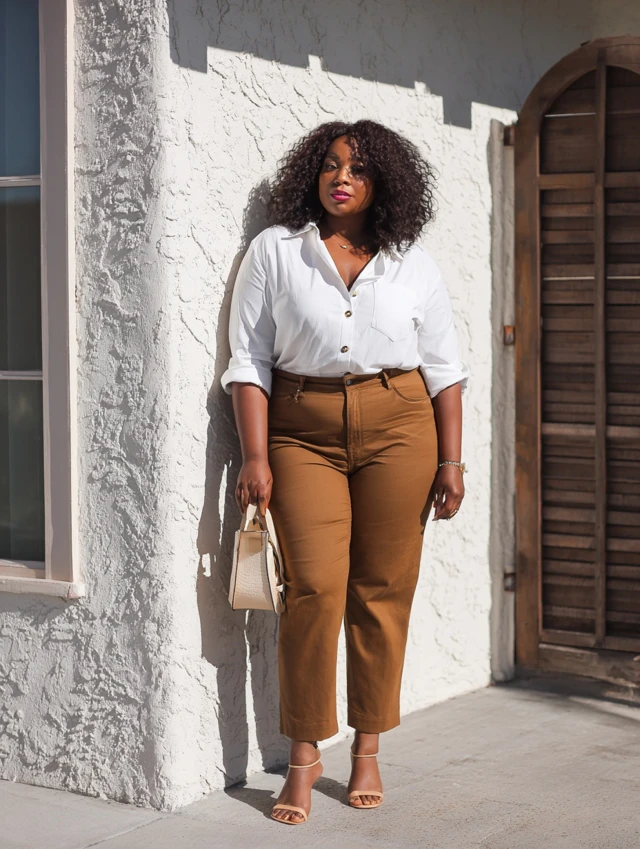 Brown jeans are an underrated wardrobe staple — rich, earthy, and surprisingly versatile. They’re a refreshing alternative to blue or black denim and bring instant warmth to your outfit. For plus-size women, brown jeans are a stylish way to add depth and variety to casual looks while still keeping things neutral and easy to pair.
