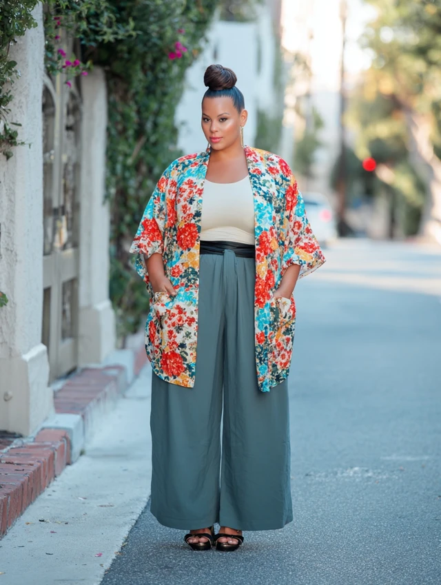 4. Kimono + Basic Top + Palazzo Pants