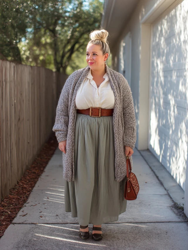 • Cinch the cardigan with a belt for a defined waist.