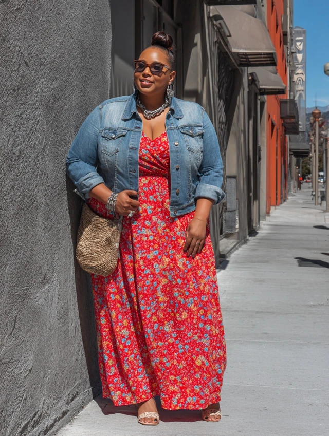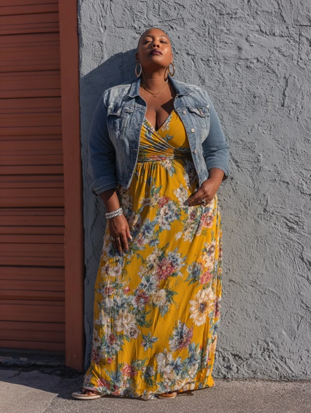 2. Maxi Dress + Denim Jacket
