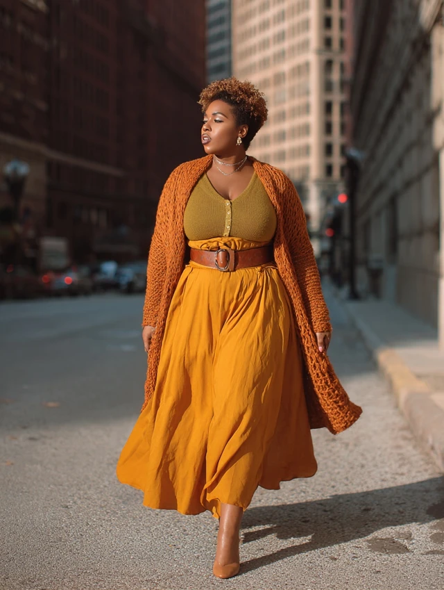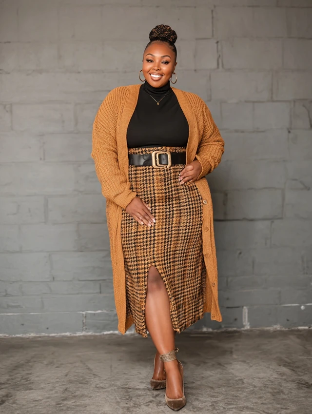5. Long Cardigan + Skirt + Belt