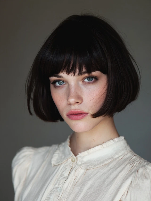 2. French Bob with Blunt Bangs