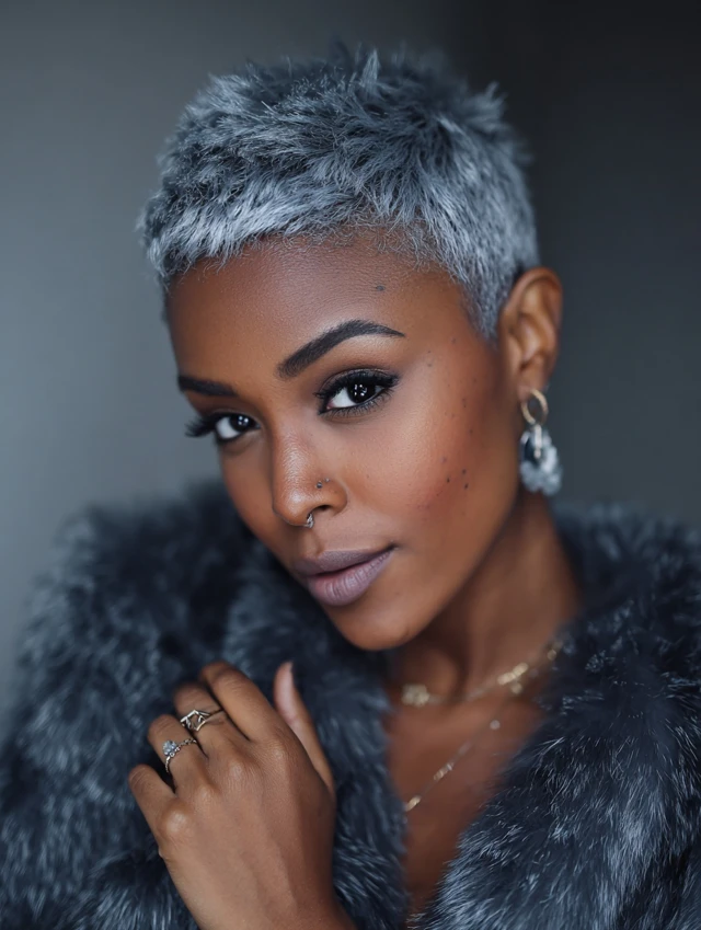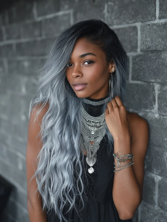 And the best part? Grey tones enhance the richness of dark skin beautifully, creating a glow that feels both edgy and refined.