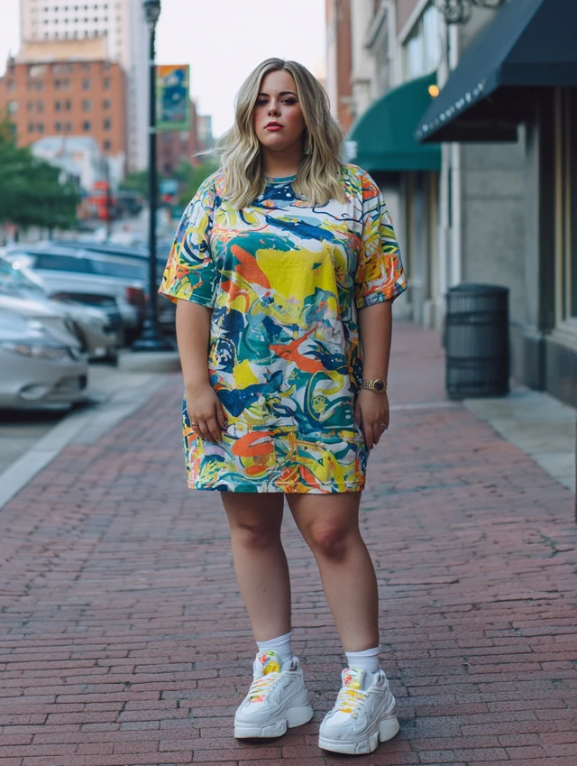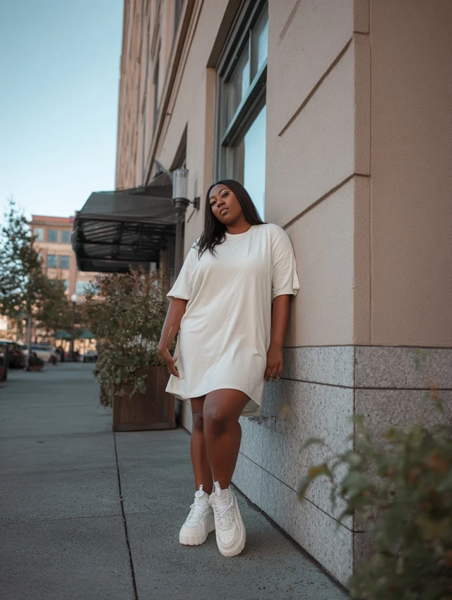4. Oversized Tee Dress + Platform Sneakers