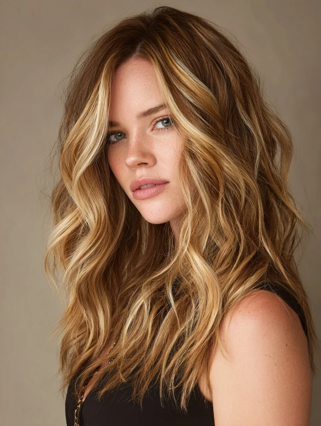 5. Layered Wavy Hair with Highlights