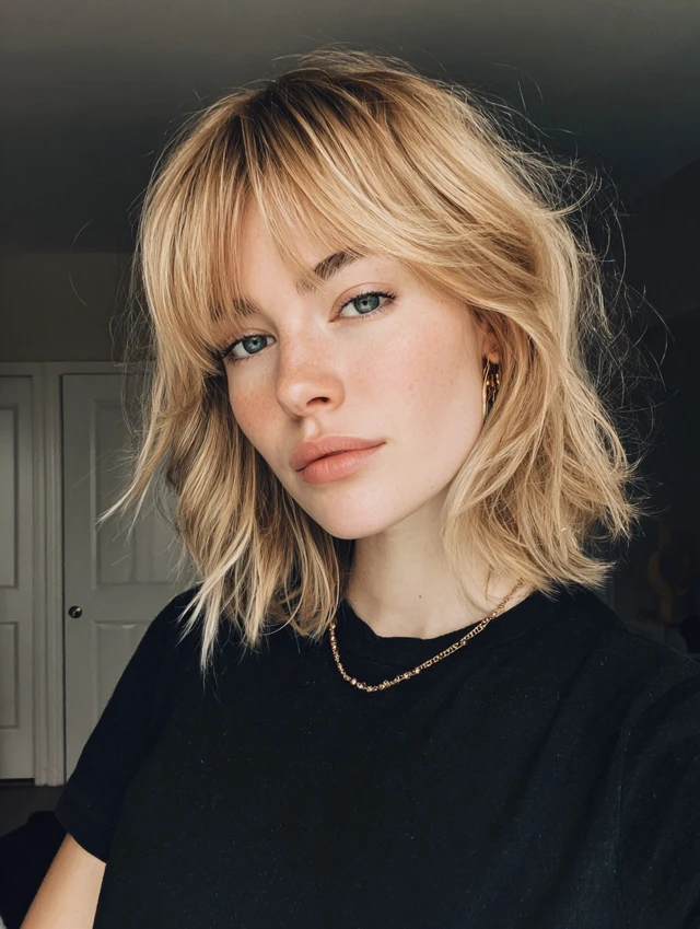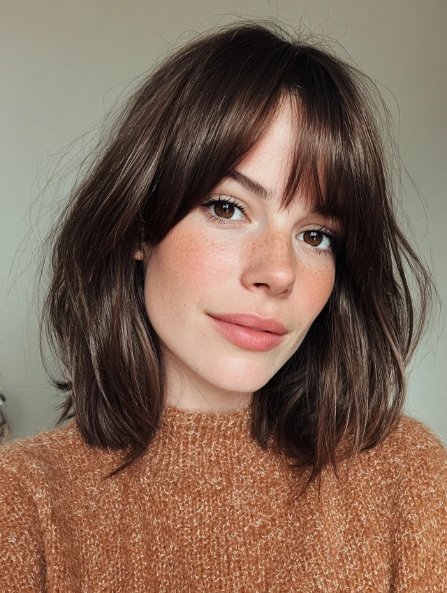 Why it works: Bangs frame the face and soften features.