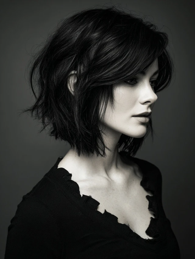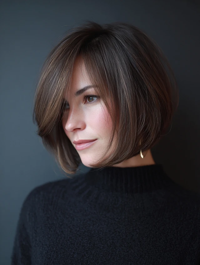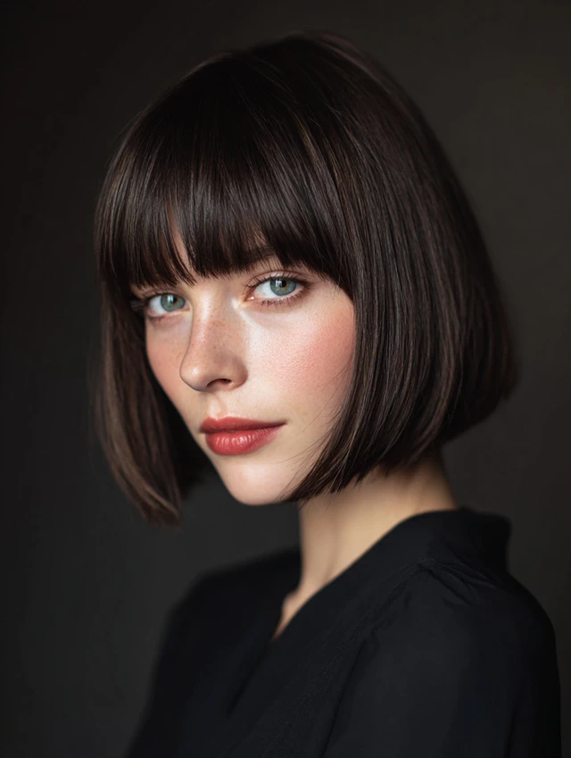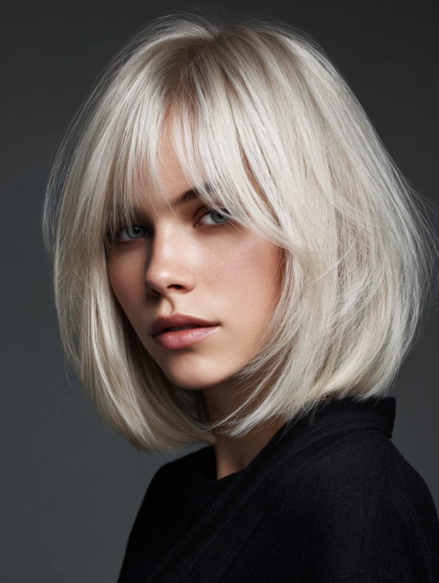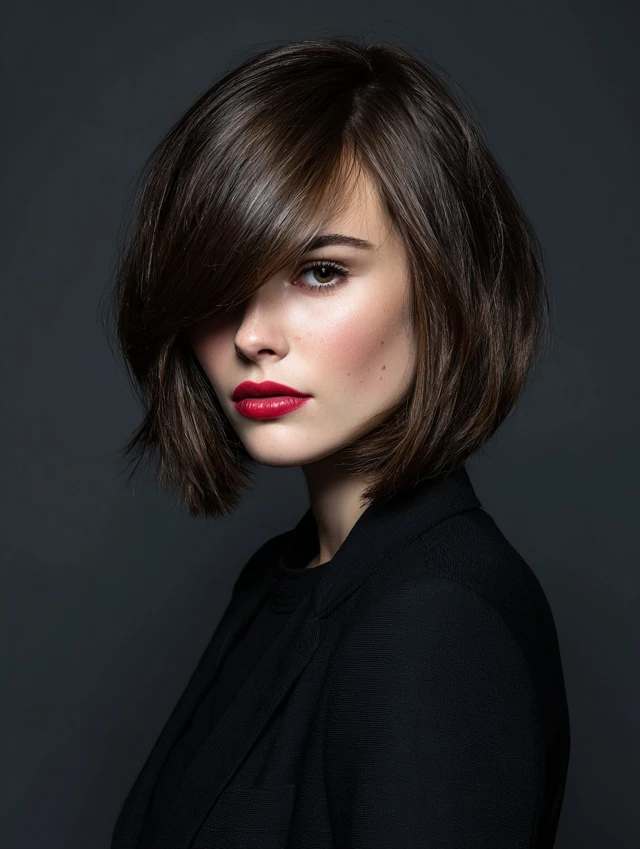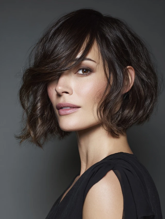 - Part bangs gently for symmetry.