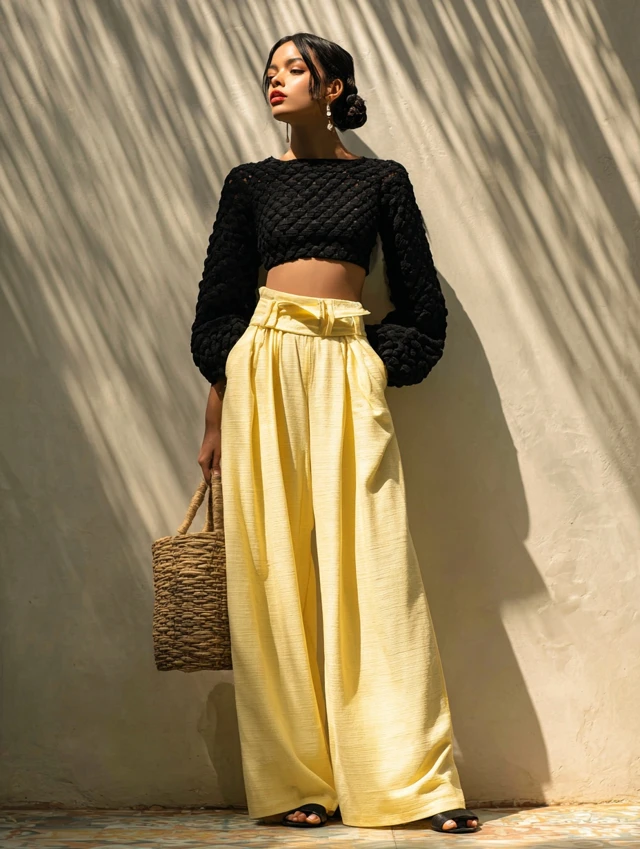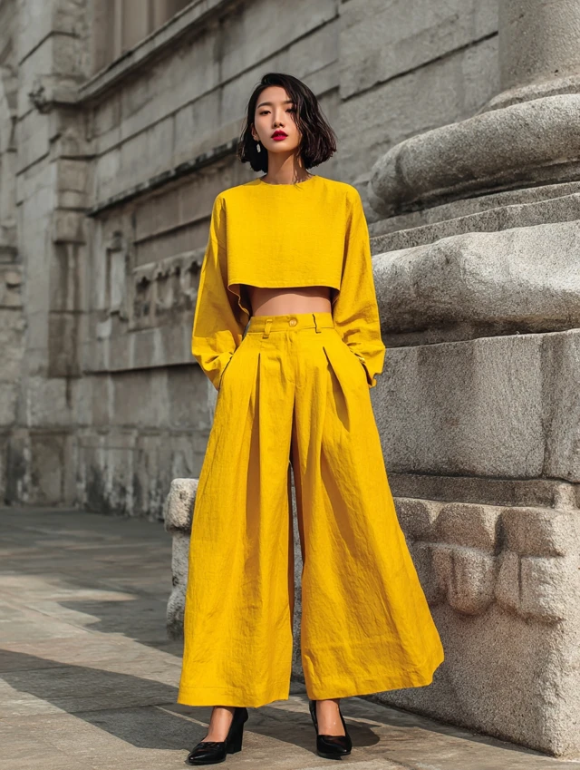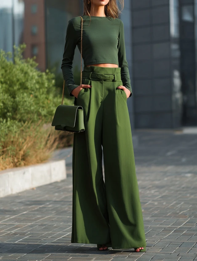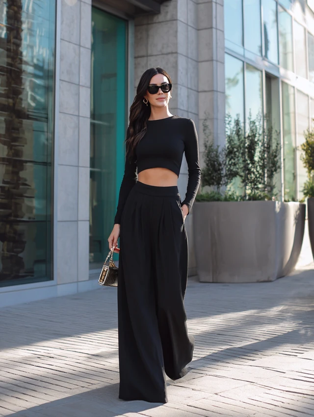 3. Cropped Long Sleeve Top + Wide-Leg Pants