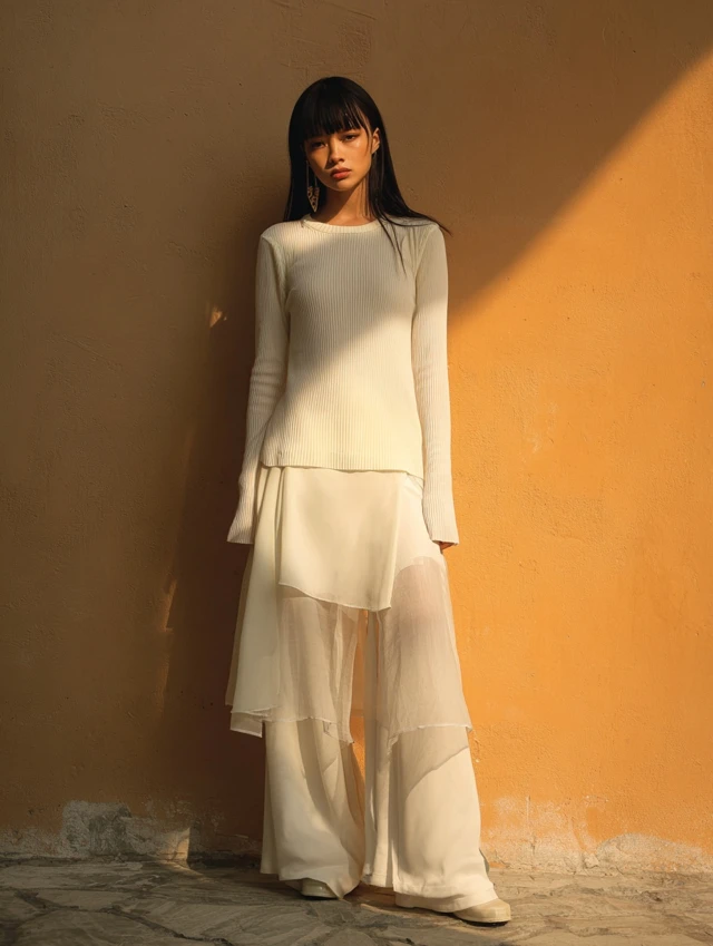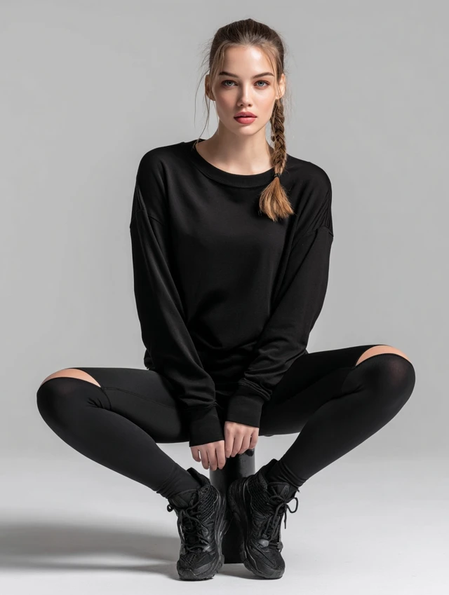 - Foundation: Long sleeve top (fitted, oversized, cropped, or wrap style).