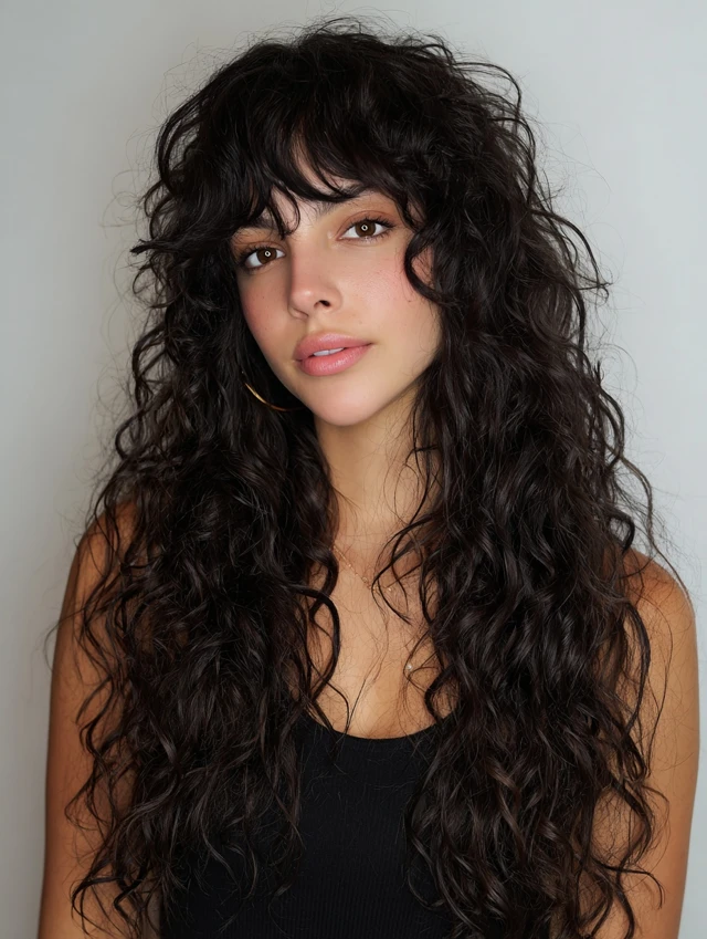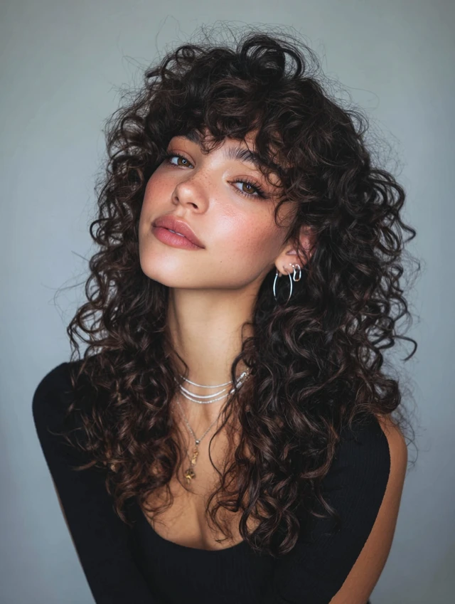 Curly hair gets enhanced volume and bounce with long, layered wolf cuts.