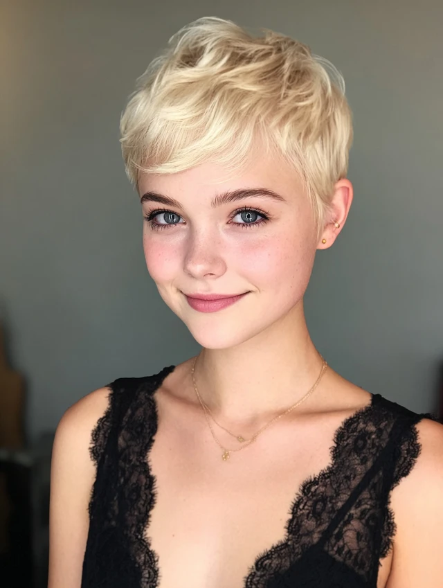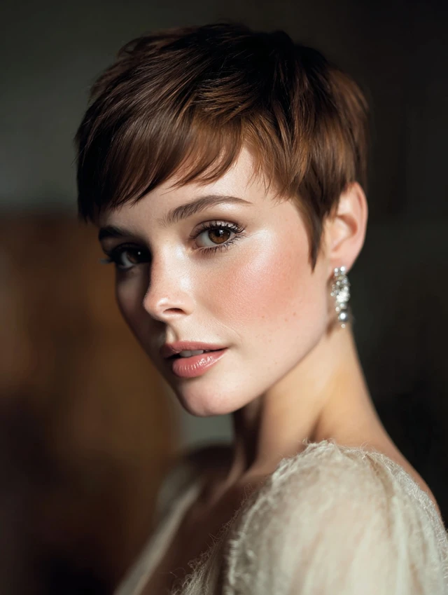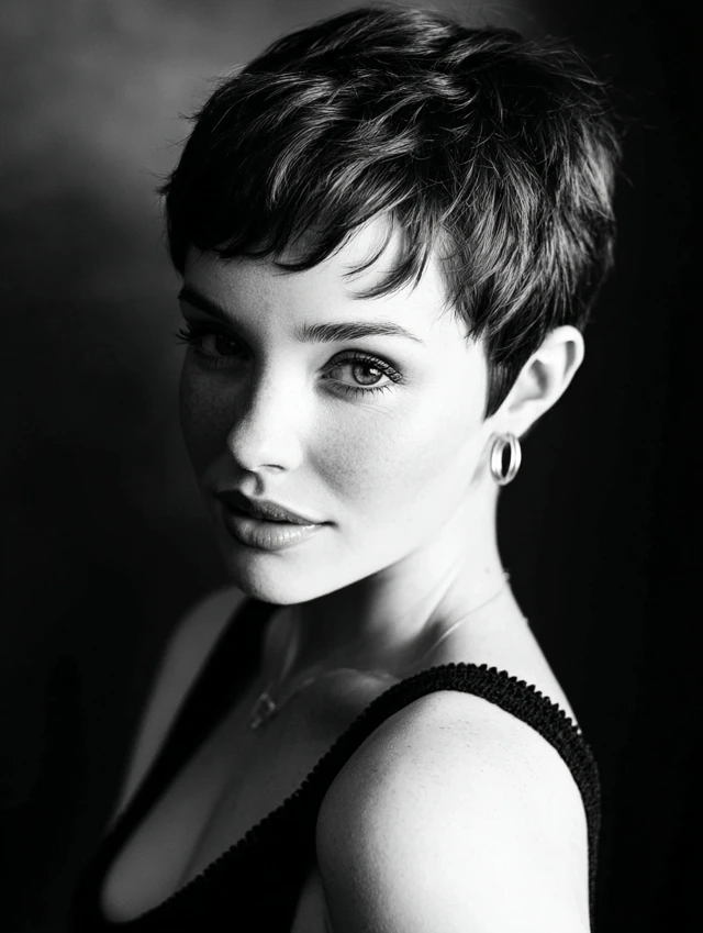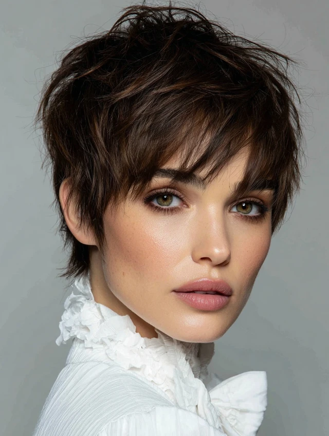 Why it works: Ultra-short length emphasizes bone structure and eyes.