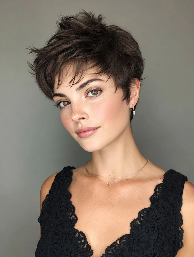 Pixie + round face = flattering confidence.