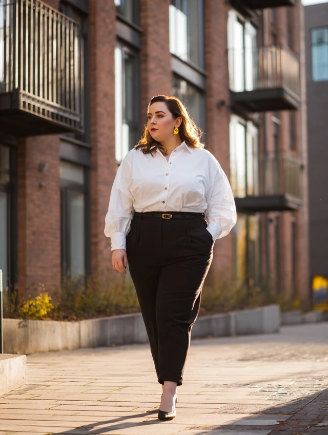 - Key Piece: A crisp white shirt, structured blazer, or sleek knit top.