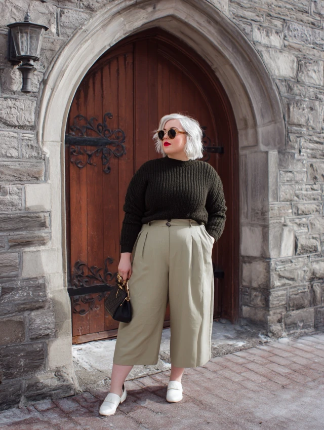 Why It Works: Flowy yet polished — the cropped wide-leg design flatters your shape while keeping it professional.
