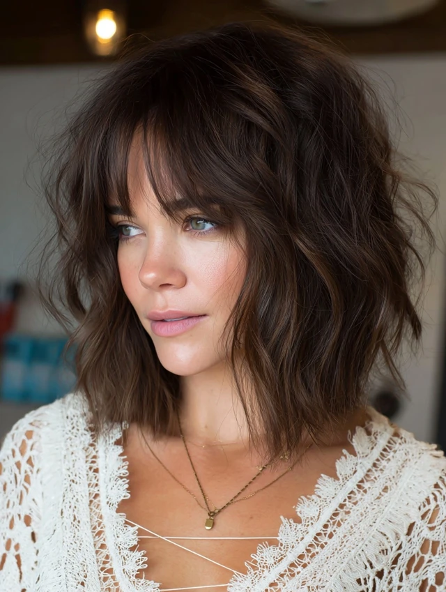 There’s something undeniably cool about shaggy lob hairstyles ideas. This style blends the length of a lob with soft, layered texture that feels casual, flattering, and easy to wear. It’s imperfect in the best way — relaxed, airy, and full of movement.