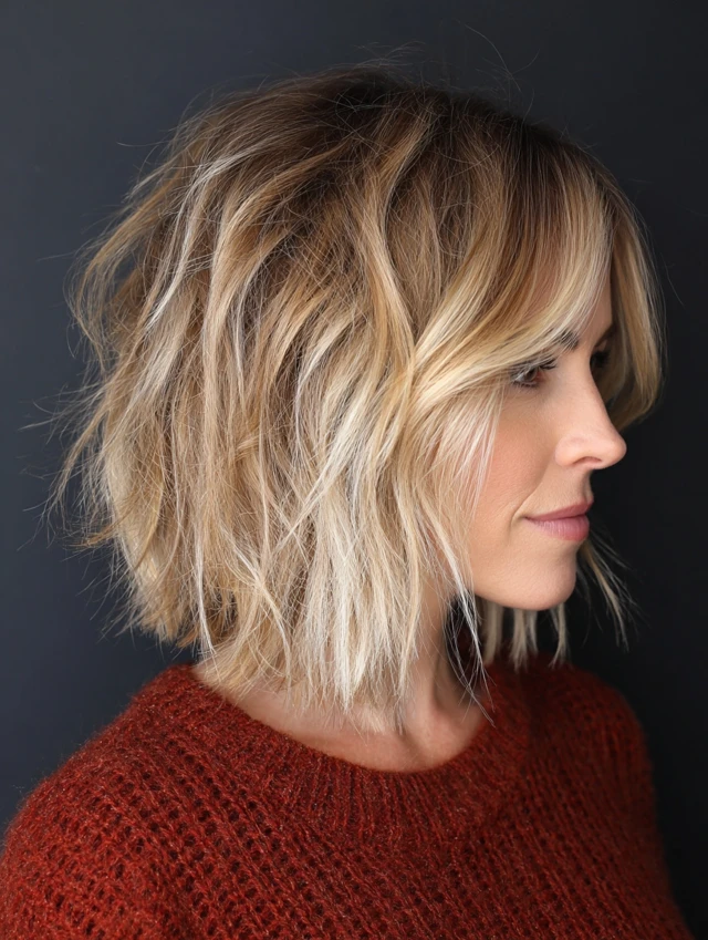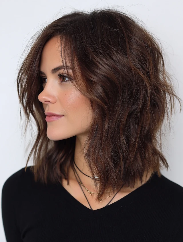 When cut correctly, a shaggy lob adds volume and softness without heaviness.