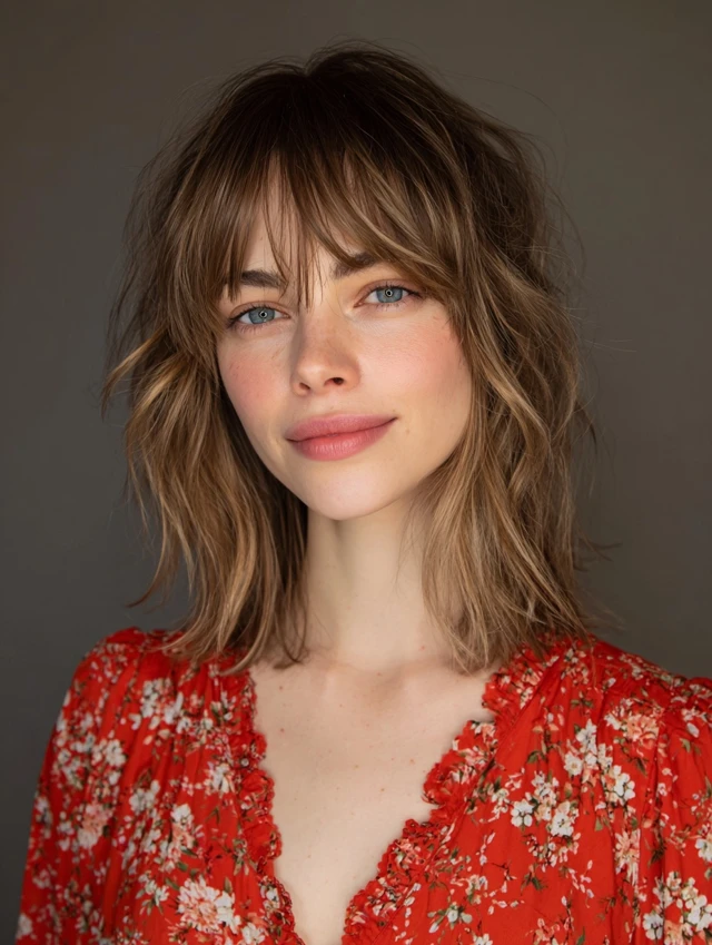 Medium hair with side bangs offers a modern, versatile style that’s easy to manage.