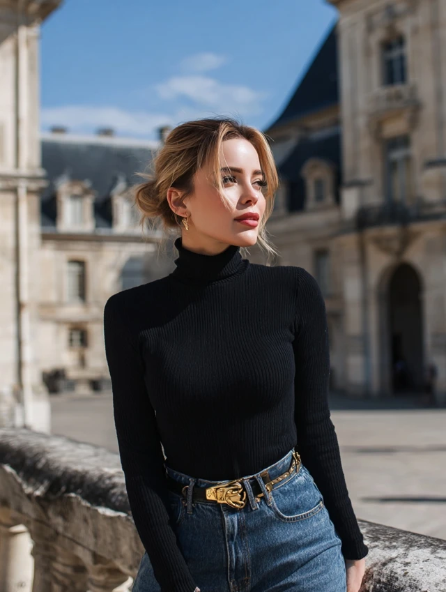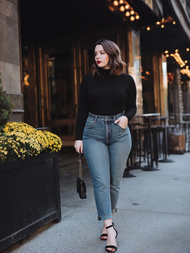1. Black Turtleneck + High-Waist Jeans