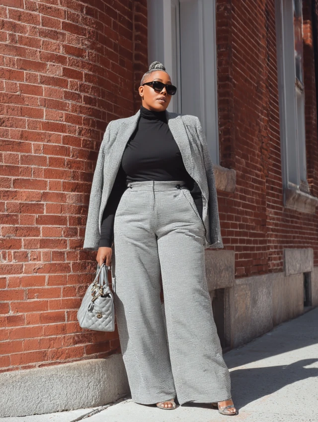2. Turtleneck + Wide-Leg Trousers + Blazer