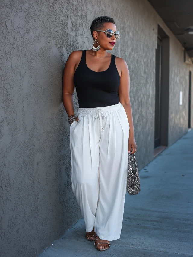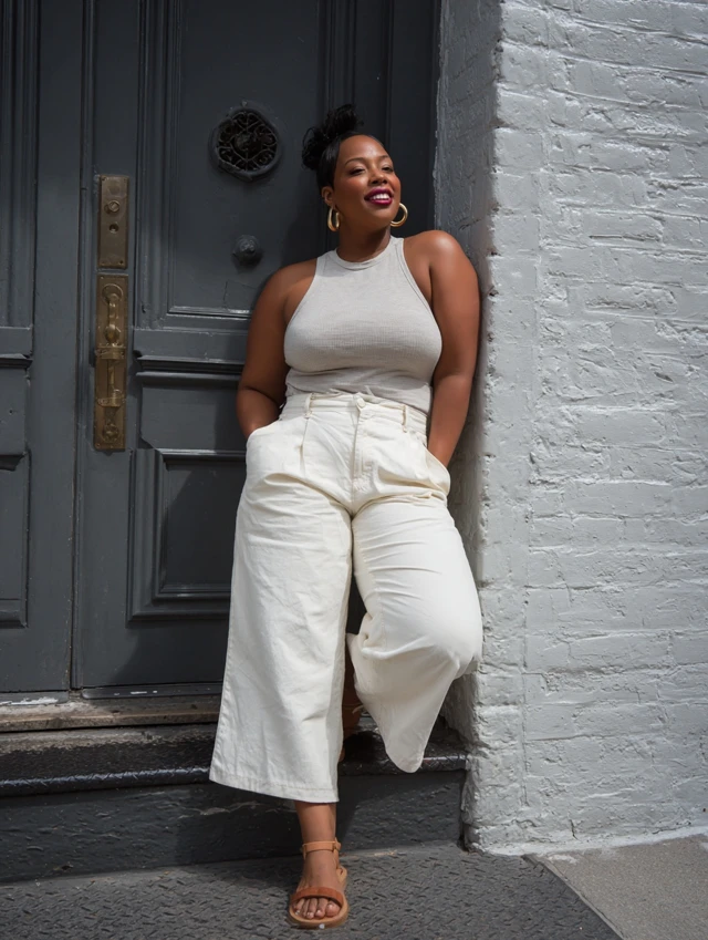 3. White Wide-Leg Jeans + Fitted Tank
