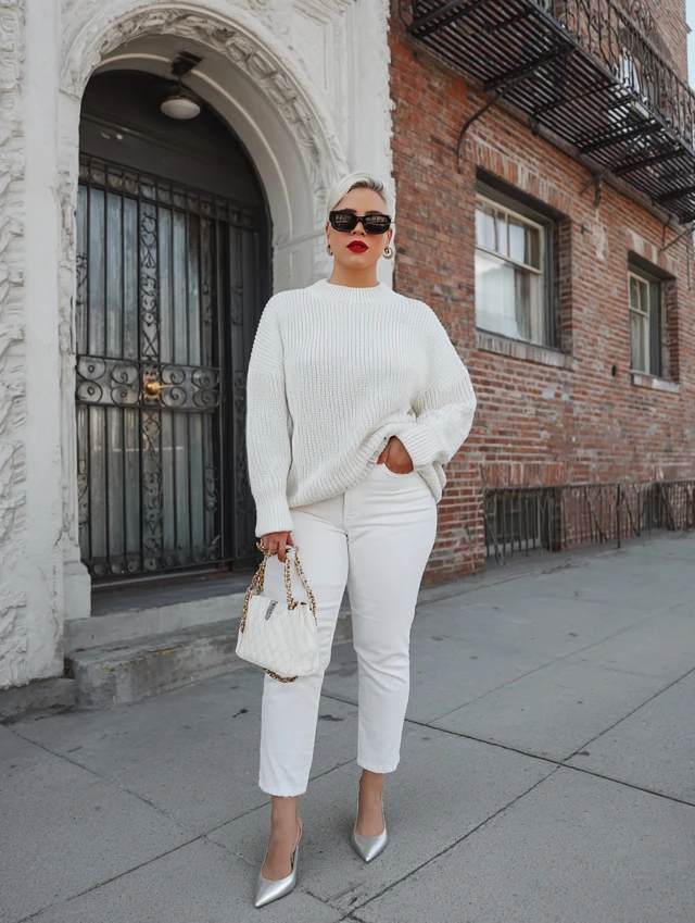 5. White Jeans + Monochrome White Sweater