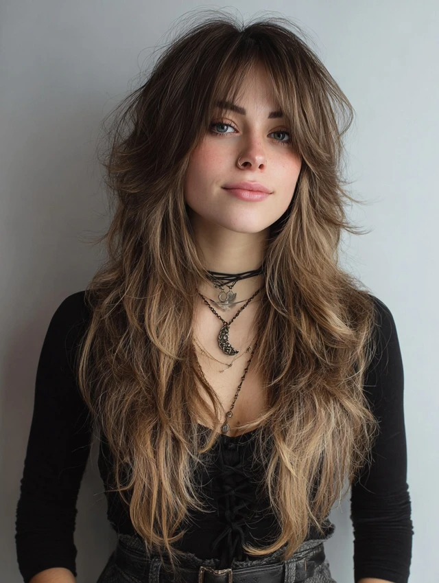 Long layers add dimension and emphasize the edgy, rebellious vibe.